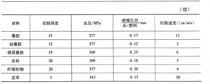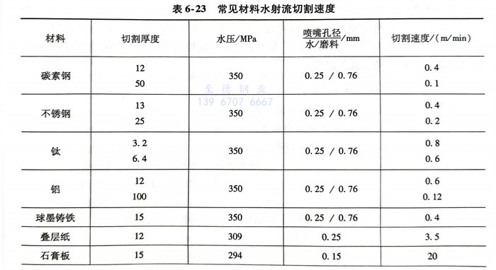 水射流切割常用的(de)切割材料及(ji)其切割工藝(yi)參數見表(biao)6-23。
