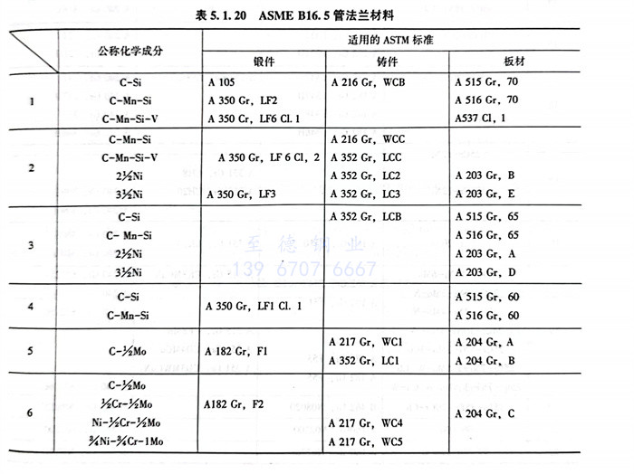 4. ASME B16.5管法蘭材料見表(biao)5.1.20