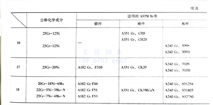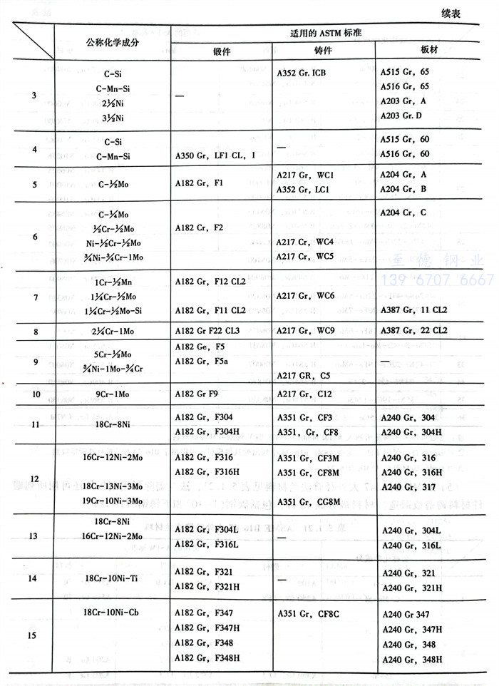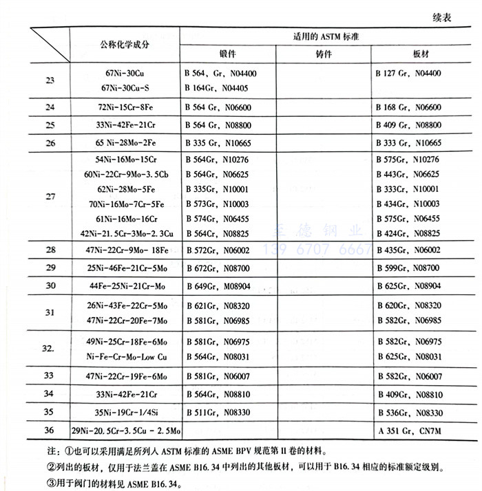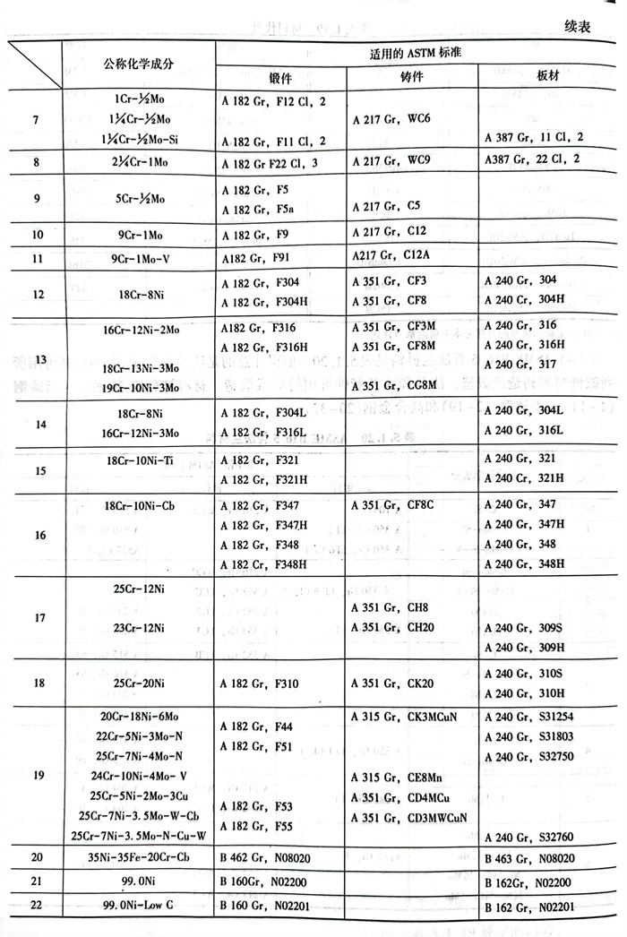 值(zhi)得注(zhu)意的是法(fa)(fa)蘭(lan)蓋除可用(yong)鋼板外還可用(yong)所列鍛(duan)件材(cai)(cai)料鑄(zhu)造或鍛(duan)造,法(fa)(fa)蘭(lan)和法(fa)(fa)蘭(lan)管件可用(yong)鑄(zhu)造或鍛(duan)造。材(cai)(cai)料被分成(cheng)36種(zhong),包括碳鋼(1~11),不銹鋼(12~19)和高合(he)金鋼(20~37)。