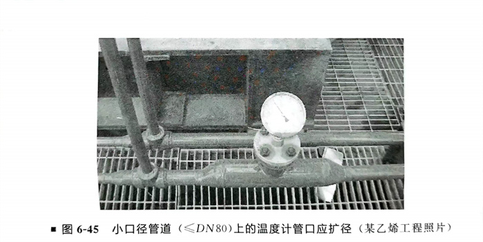 ⑥. 對于(yu)有(you)分支的(de)工(gong)藝(yi)(yi)管道,安裝(zhuang)溫度(du)計或熱(re)電(dian)偶時,要特別注意安裝(zhuang)位(wei)置與工(gong)藝(yi)(yi)流程相符,且不能安裝(zhuang)在工(gong)藝(yi)(yi)管道的(de)死角、盲腸(chang)位(wei)置。熱(re)電(dian)偶溫度(du)計接口應(ying)設(she)在兩(liang)個(ge)或兩(liang)個(ge)以上進入(ru)流體相遇(yu)點的(de)下(xia)游至少(shao)8倍(bei)管徑(jing)處。但在8倍(bei)管徑(jing)內允許有(you)安全閥及(ji)放(fang)空(kong)的(de)接管(圖6-47)。