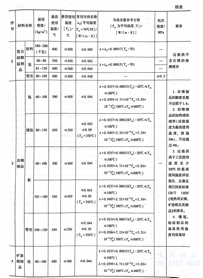 (7)隔熱(re)(re)材料應是隔熱(re)(re)性能好,并有(you)明確(que)的導(dao)熱(re)(re)系數(shu)方程(cheng)(cheng)式或隨溫度變(bian)化的導(dao)熱(re)(re)系數(shu)圖表。進行絕熱(re)(re)計算時(shi)可(ke)采(cai)用(yong)(yong)GB 50264《工業(ye)設備(bei)及管道(dao)絕熱(re)(re)工程(cheng)(cheng)設計規范》中附錄(lu)A常用(yong)(yong)絕熱(re)(re)材料性能規定(ding)的數(shu)據(ju)。