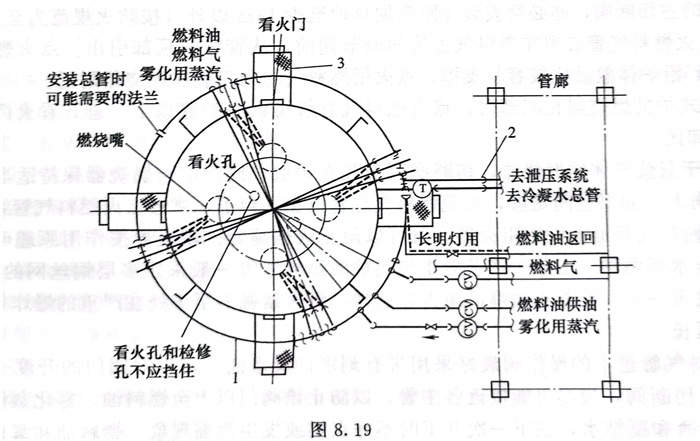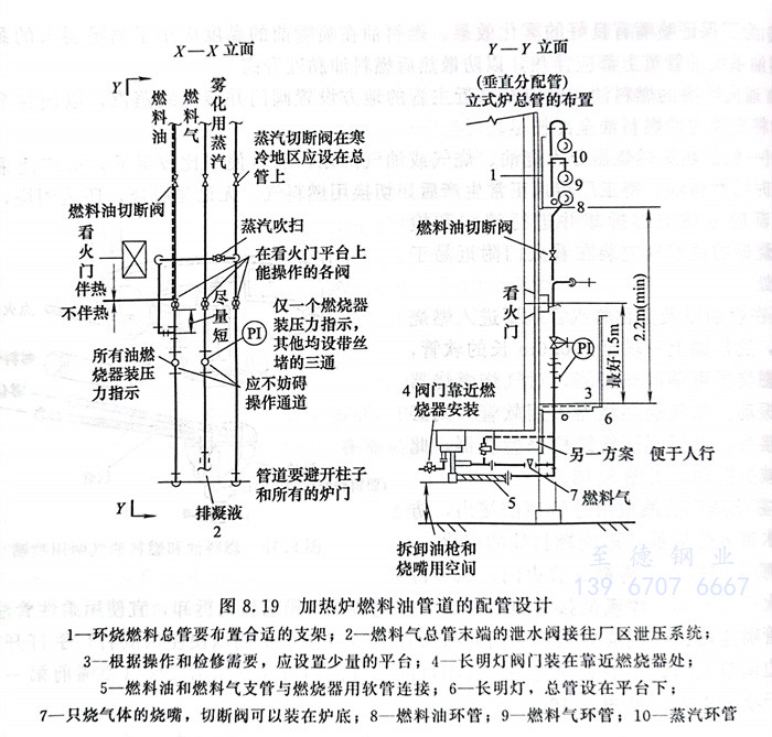 ①. 燃(ran)(ran)料油(you)系統管(guan)(guan)道(dao)要(yao)設循(xun)環(huan)管(guan)(guan),燃(ran)(ran)料油(you)管(guan)(guan)道(dao)一般來自(zi)主(zhu)管(guan)(guan)廊,繞加熱爐一周再返回主(zhu)管(guan)(guan)廊,在主(zhu)管(guan)(guan)架上(shang)有燃(ran)(ran)料油(you)來回的管(guan)(guan)道(dao)。在噴嘴的燃(ran)(ran)料油(you)管(guan)(guan)由燃(ran)(ran)料油(you)主(zhu)管(guan)(guan)的側面(mian)或下部引出。
