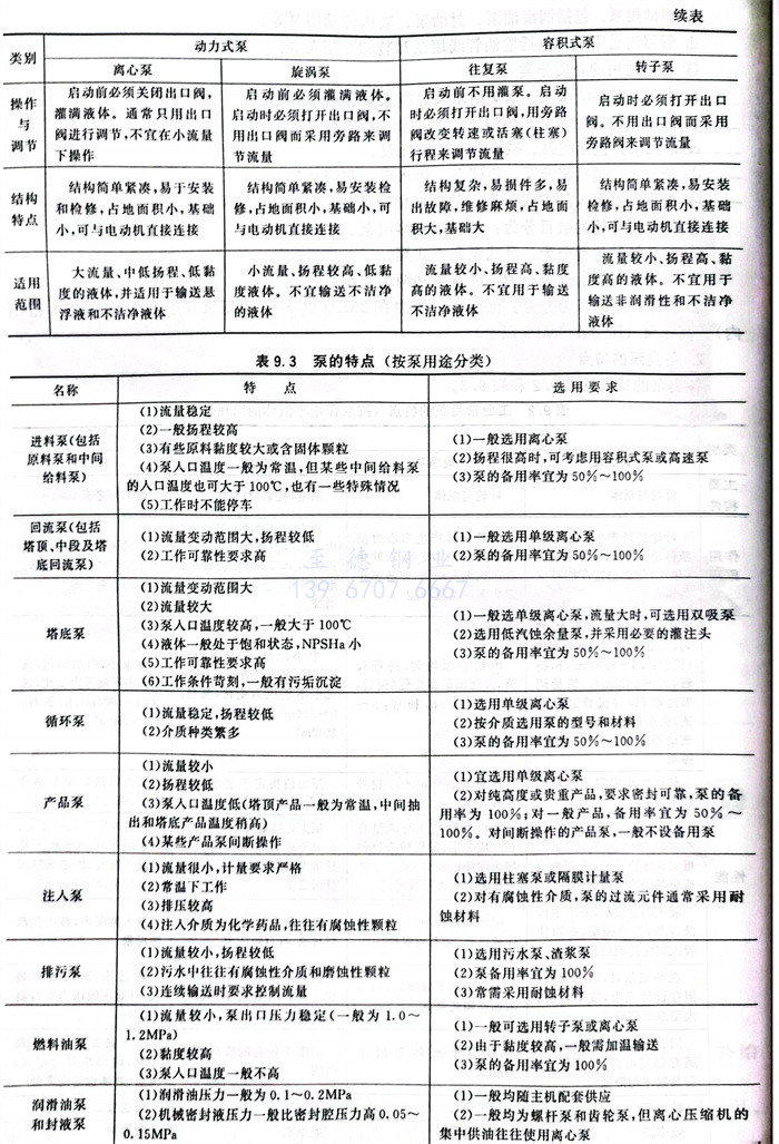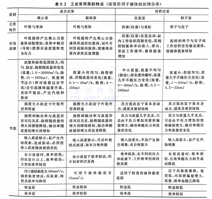 工(gong)業裝置常用(yong)泵(beng)的類型見表9.1。
