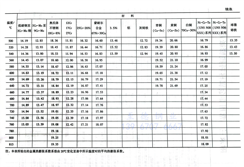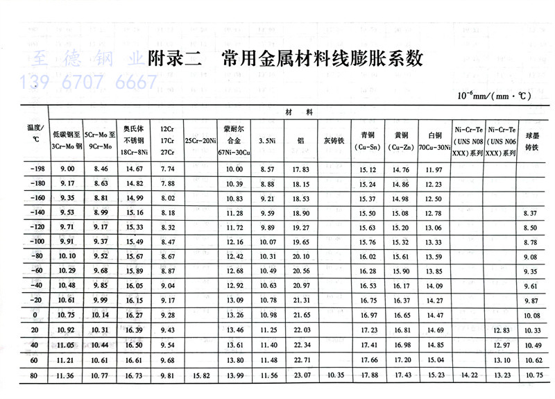 常用金(jin)屬材(cai)料線膨脹系數參照表