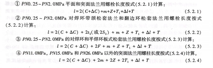 ⑤. PN11.0MPa、PN.0MPa和26.0MPa的突面法蘭用(yong)螺柱長度按(an)式(5.2.5)計(ji)算: