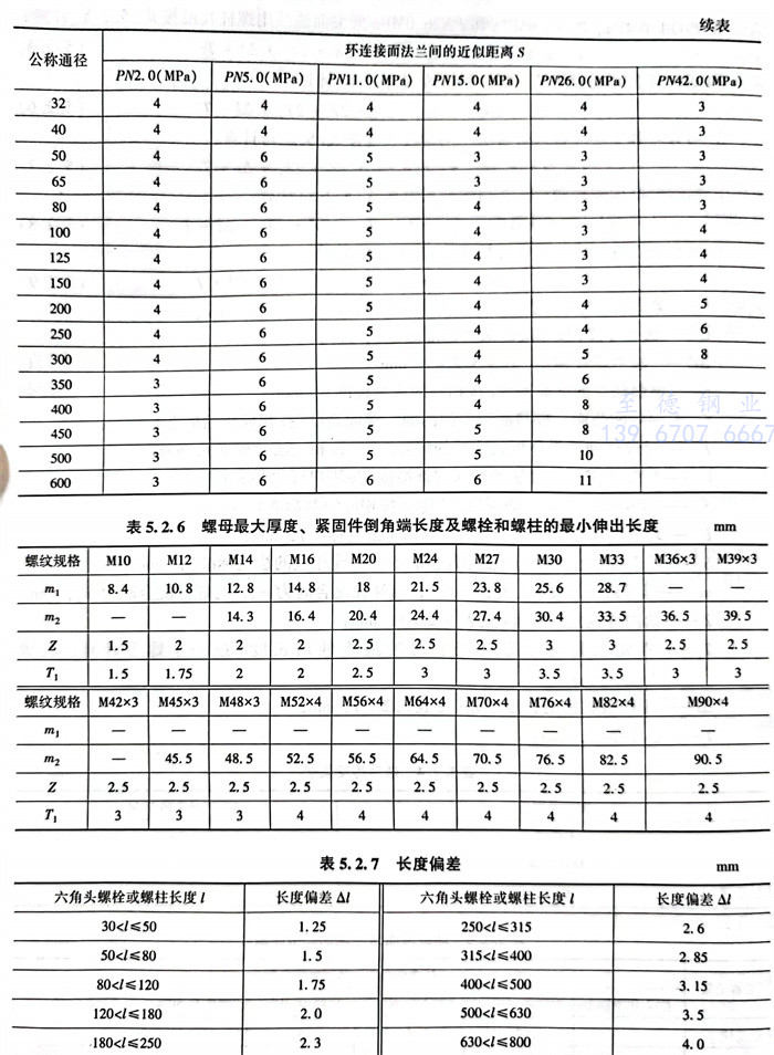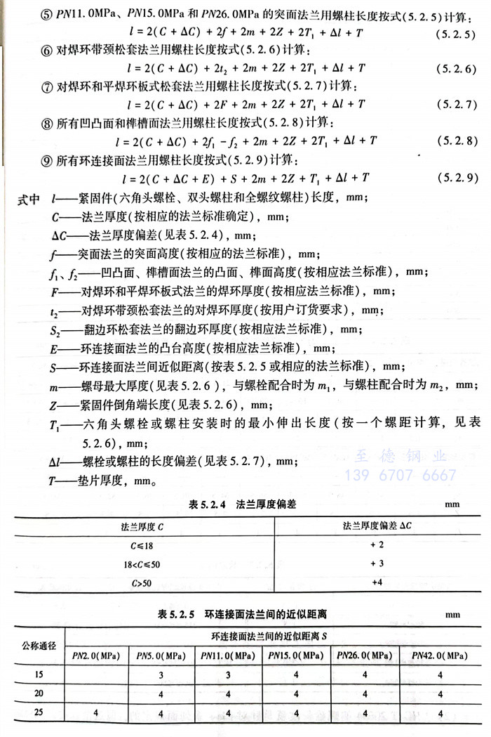 ①. PN0.25~PN2.0MPa平面和突面法蘭用螺栓長度按(an)式(5.2.1)計算:PNO.25~PN2.0
