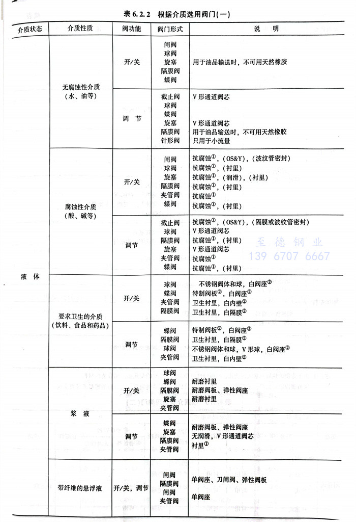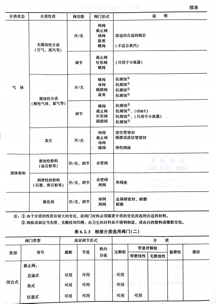 根據介質及功能要求常用閥門類型的選用,見表(biao)6.2.2和(he)表(biao)6.2.3。