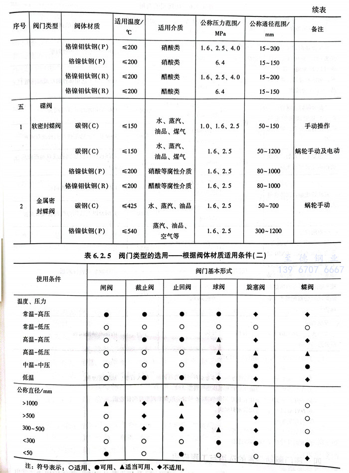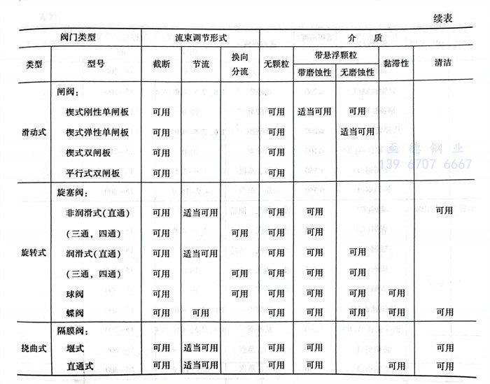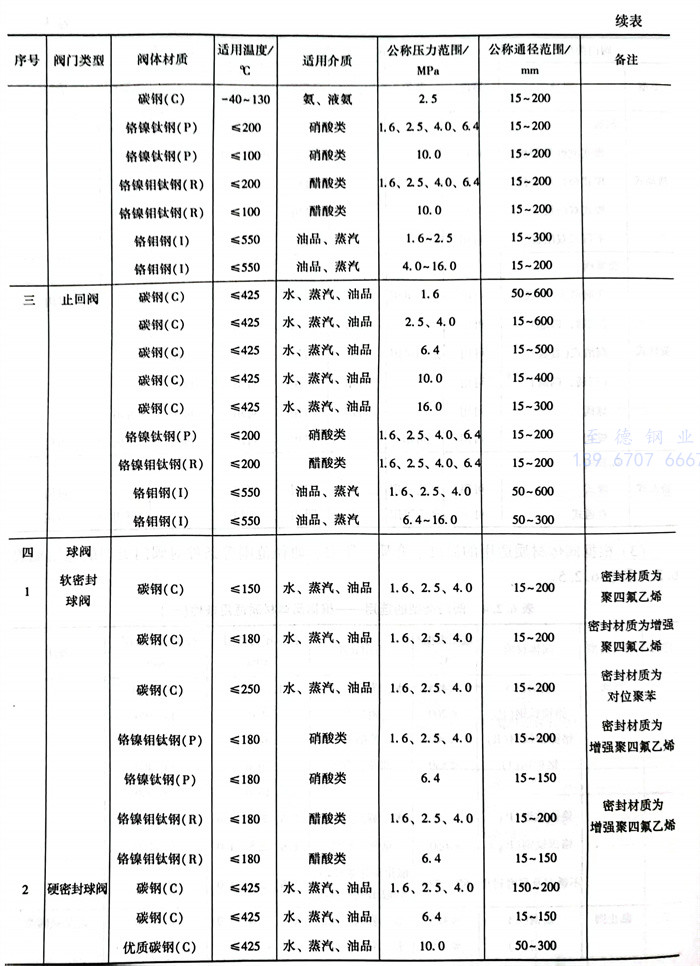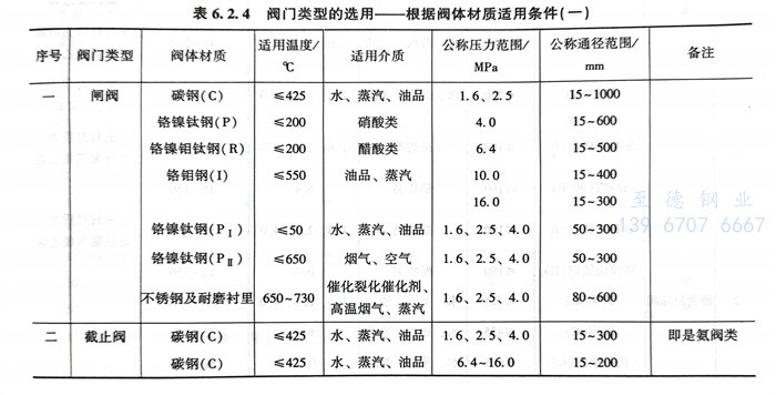 根據閥體材(cai)質適用(yong)的(de)溫度、介質、壓力、通(tong)徑(jing)范圍等條(tiao)件對(dui)閥門類型(xing)的(de)選用(yong)見(jian)表6.2.4和(he)表6.2.5。