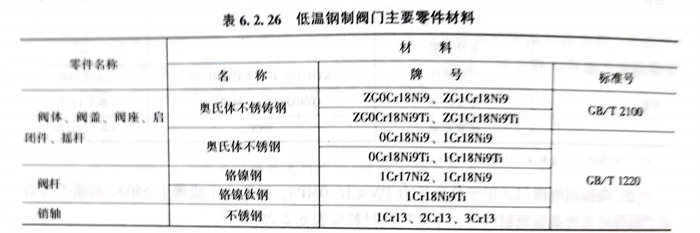 用于(yu)公稱壓力PN≤6.4MPa,溫度(du)高(gao)于(yu)或等于(yu)-196℃的乙烯(xi)、丙烯(xi)、液態天然氣及(ji)液氮等介(jie)質的低溫鋼(gang)制閥門,主要零件(jian)材料按表6.2.26選用。