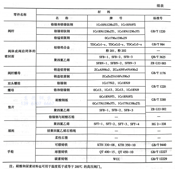 用(yong)于公稱壓力PN≤16.0MPa,溫(wen)度小于或等于550℃的(de)蒸汽及石油產(chan)品等介(jie)質的(de)高(gao)溫(wen)鋼制閥(fa)門,主(zhu)要(yao)零件(jian)材料按表6.2.25選用(yong)。