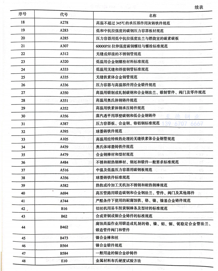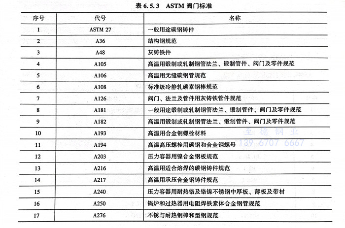 美國材料實驗協(xie)會 ASTM 閥門標準見表6.5.3。