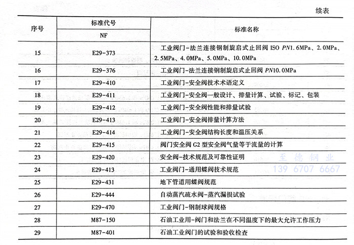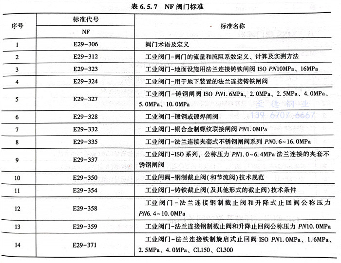 法國 NF 閥(fa)門標準見(jian)表6.5.7。