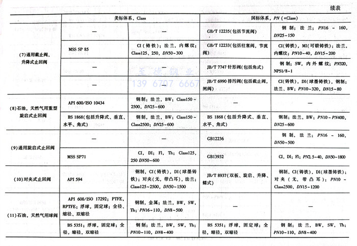 閥門通用標(biao)準(zhun)見表6.5.11