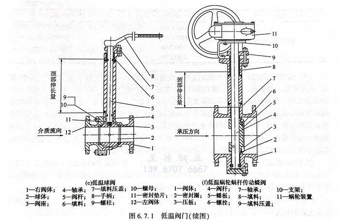 低(di)溫(wen)(wen)閥(fa)(fa)門(men)的(de)一個最顯注的(de)特點就(jiu)是其閥(fa)(fa)蓋(gai)(gai)一般為(wei)長(chang)(chang)頸結構(gou)(gou),GB/T 24925規(gui)定“低(di)溫(wen)(wen)閘閥(fa)(fa)、截止閥(fa)(fa)、球閥(fa)(fa)、蝶閥(fa)(fa)的(de)閥(fa)(fa)蓋(gai)(gai)應(ying)根據不同的(de)使用溫(wen)(wen)度(du)要(yao)(yao)求設計成(cheng)便于保(bao)(bao)冷(leng)的(de)長(chang)(chang)頸閥(fa)(fa)蓋(gai)(gai)結構(gou)(gou),以保(bao)(bao)證(zheng)填(tian)(tian)料(liao)(liao)(liao)(liao)函(han)底部(bu)的(de)溫(wen)(wen)度(du)保(bao)(bao)持在0℃以上”。主要(yao)(yao)是為(wei)了(le)使閥(fa)(fa)門(men)操(cao)(cao)作(zuo)手(shou)柄和(he)填(tian)(tian)料(liao)(liao)(liao)(liao)函(han)結構(gou)(gou)遠離低(di)溫(wen)(wen)區,既(ji)可以避(bi)免溫(wen)(wen)度(du)太低(di)造成(cheng)操(cao)(cao)作(zuo)人員凍傷,也可以保(bao)(bao)證(zheng)填(tian)(tian)料(liao)(liao)(liao)(liao)函(han)和(he)壓(ya)套在正(zheng)常的(de)溫(wen)(wen)度(du)下(xia)使用,防止填(tian)(tian)料(liao)(liao)(liao)(liao)的(de)密封性能降(jiang)低(di),延(yan)長(chang)(chang)填(tian)(tian)料(liao)(liao)(liao)(liao)的(de)使用壽(shou)命。此外(wai),由于低(di)溫(wen)(wen)管(guan)道一般有(you)著(zhu)較厚(hou)的(de)保(bao)(bao)冷(leng)層厚(hou)度(du),長(chang)(chang)頸閥(fa)(fa)蓋(gai)(gai)便于保(bao)(bao)冷(leng)施工,并(bing)使填(tian)(tian)料(liao)(liao)(liao)(liao)壓(ya)蓋(gai)(gai)處于保(bao)(bao)冷(leng)層外(wai),有(you)利于需要(yao)(yao)時隨時緊固壓(ya)蓋(gai)(gai)螺栓或添(tian)加(jia)填(tian)(tian)料(liao)(liao)(liao)(liao)而無需損壞(huai)保(bao)(bao)冷(leng)層。