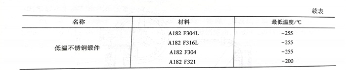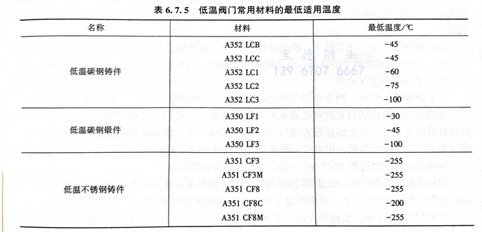 根(gen)據(ju)ASME B31.3低溫(wen)閥門常(chang)用材料(liao)的(de)最低適用溫(wen)度見表6.7.5。