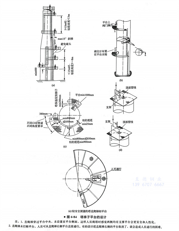 ③. 塔(ta)平臺直梯應(ying)自下而上分段錯開(kai)布置(zhi)。