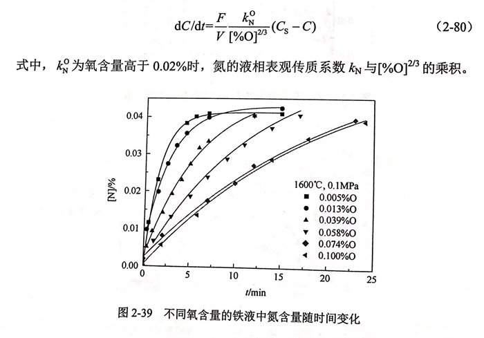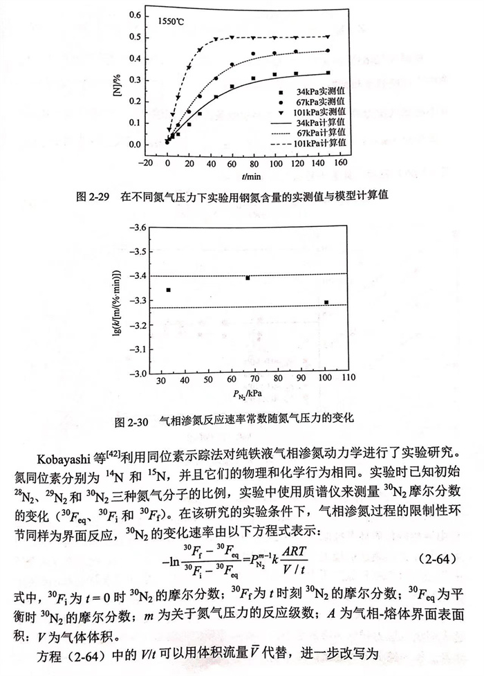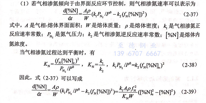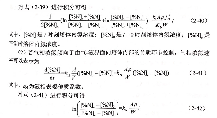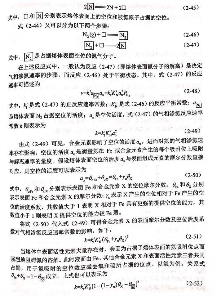 據此(ci),通(tong)過式(2-75),可以通(tong)過添(tian)加元(yuan)素i的吸(xi)附(fu)系數K;來確定(ding)氣(qi)相滲(shen)氮反應(ying)速率常數,并(bing)進一步解釋元(yuan)素i在熔體表面的吸(xi)附(fu)對氣(qi)相滲(shen)氮反應(ying)速率常數的影響。