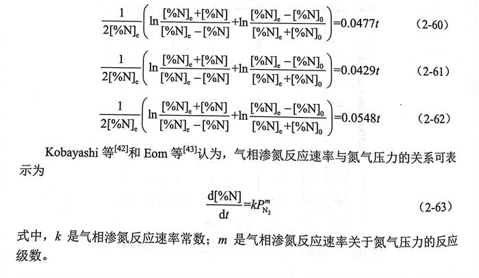目前,關(guan)于氣(qi)(qi)相中氮(dan)(dan)氣(qi)(qi)壓力(li)對(dui)氣(qi)(qi)相滲(shen)氮(dan)(dan)動(dong)力(li)學影(ying)響的研究都是基于氣(qi)(qi)相滲(shen)氮(dan)(dan)動(dong)力(li)學模型(xing)進(jin)行。針對(dui)氮(dan)(dan)氣(qi)(qi)壓力(li)對(dui)氣(qi)(qi)相滲(shen)氮(dan)(dan)速率(lv)或氣(qi)(qi)相滲(shen)氮(dan)(dan)反應速率(lv)常數(shu)的影(ying)響及其函數(shu)關(guan)系,根(gen)據(ju)氣(qi)(qi)相滲(shen)氮(dan)(dan)動(dong)力(li)學模型(xing)選擇的不同(tong),研究人員存(cun)在不同(tong)的見解。