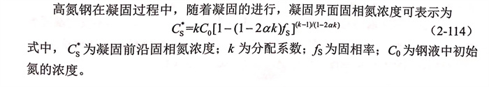 高氮鋼在(zai)凝(ning)固過程中,隨著凝(ning)固的進行,凝(ning)固界面固相(xiang)氮濃(nong)度(du)可(ke)表示為