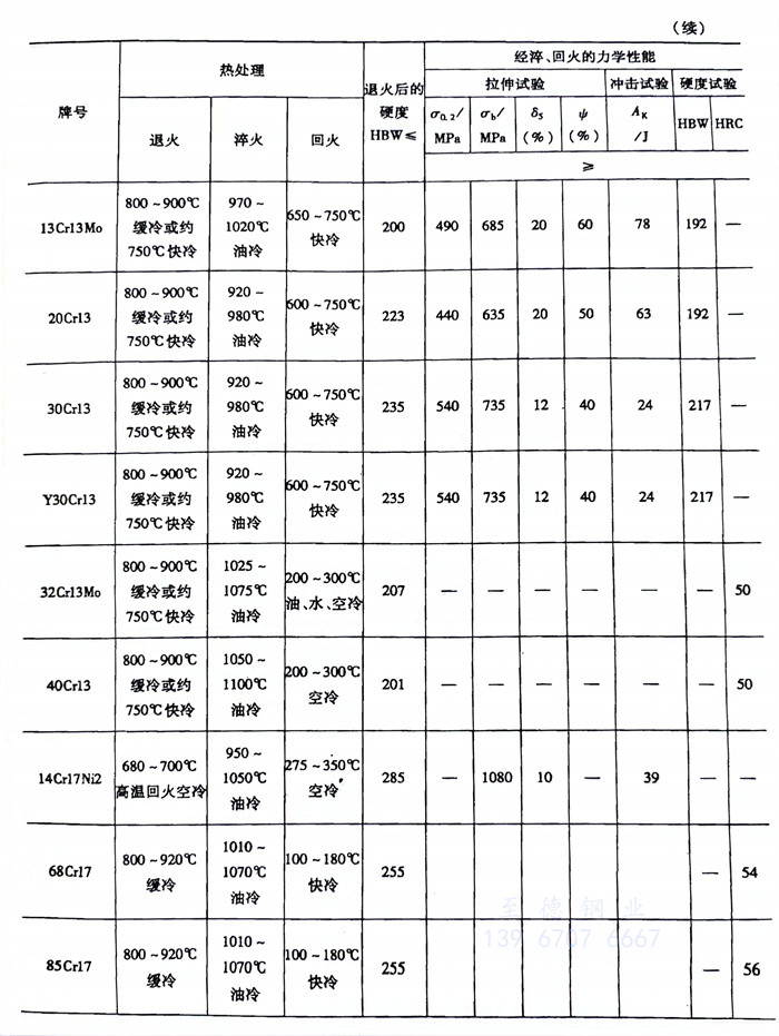 30Cr13、40Cr13鋼(gang)因碳含量較高(gao),較12Cr13、20Cr13鋼(gang)具(ju)(ju)(ju)有更高(gao)的強度(du)(du)、硬度(du)(du)和更好的淬透性,在(zai)(zai)室溫、稀硝酸(suan)和弱的有機酸(suan)中具(ju)(ju)(ju)有一定(ding)的耐蝕性,但韌性和耐蝕性不(bu)及12Cr13和20Cr13鋼(gang)。主要用于高(gao)強度(du)(du)部(bu)件(jian),以及承受高(gao)應力載荷并在(zai)(zai)一定(ding)腐(fu)蝕介質(zhi)條(tiao)件(jian)下(xia)的磨損(sun)件(jian),如300℃以下(xia)工作的刀具(ju)(ju)(ju)、彈簧,400℃以下(xia)工作的軸、軸承、外科醫療器具(ju)(ju)(ju)和模具(ju)(ju)(ju)等。該(gai)類鋼(gang)焊接性差,通常(chang)不(bu)能(neng)用于制造焊接部(bu)件(jian)。