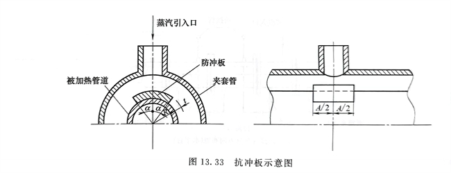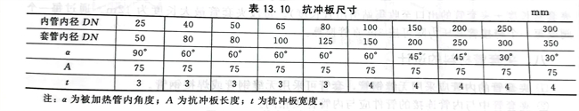 ④. 蒸汽(qi)壓力大于等于PN0.7MPa時(shi),應在套管內(nei)蒸汽(qi)引入口(kou)處設抗沖板(ban)。抗沖板(ban)及其尺寸見圖13.33、表13.10。