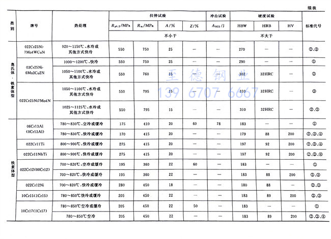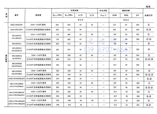 不銹鋼冷軋鋼和耐熱鋼在熱處理狀態的力學性能數據見表1-8。不銹鋼(gang)熱軋鋼(gang)板除個別牌號的伸長率和抗拉強度與不銹鋼冷軋鋼板略有差別外,其余均相同。從表中可以看出,不論不銹鋼板還是耐熱鋼板,奧氏體型的鋼板的綜合性能最好,既有足夠的強度,又有極好的塑性,同時硬度也不高,這也是它們被廣泛采用的原因之一。奧氏體型不銹(xiu)鋼同大多數金屬材料相似,其抗拉強度、屈服強度和硬度,隨著溫度的降低而提高;塑性則隨著溫度降低而降低。其抗拉強度在15~80℃溫度范圍內變化較快,溫度進一步降低時則變化緩慢,而屈服強度的增長是較為均勻的。更重要的是:隨著溫度的降低,其沖擊韌性減少緩慢,并不存在脆性轉變溫度。所以18-8型不銹鋼在低溫時能保持足夠的塑性和韌性,如在溫度-196℃時,沖擊吸收功可達392J;甚至在溫度為-270℃的液氨介質中仍保持有足夠的沖擊值;更難能可貴的是在溫度為-273℃的液氫介質中具有阻止應力集中部位發生脆性破裂的能力。因此,這類鋼被廣泛應用于制造深冷設備。但是,為了防止18-8型不銹鋼焊縫產生熱裂紋,在焊接材料中要添加一些鐵素體形成元素,而鐵素體的形成會降低其低溫沖擊韌度。因此,用于低溫工況的18-8型不銹鋼焊接材料時,要引起足夠的重視。