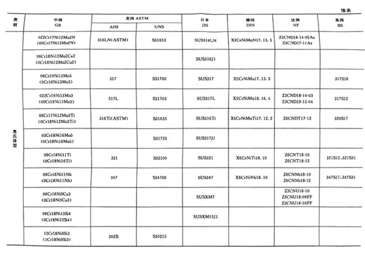 不銹鋼焊條型號及熔敷金屬化學成分表