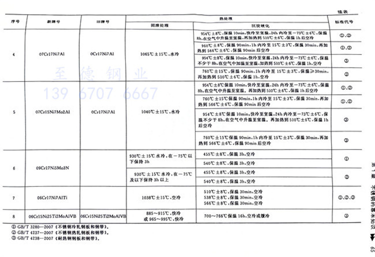 馬氏體不銹(xiu)鋼(gang)板(ban)和沉淀硬化型不銹(xiu)鋼(gang)板(ban)典型熱(re)處理制(zhi)度見表