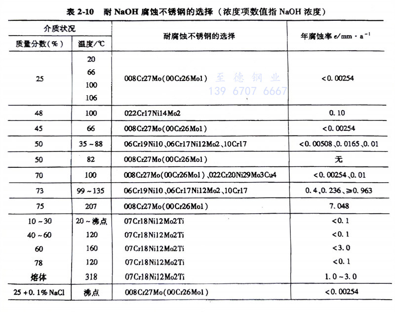 耐(nai)NaOH腐蝕不(bu)銹鋼的選擇(ze)見表2-10。