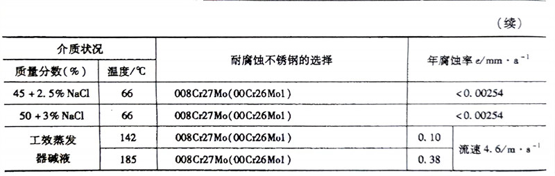 表2-10 耐(nai)NaOH腐(fu)蝕(shi)不銹鋼的選擇(濃度項數值(zhi)指NaOH濃度)