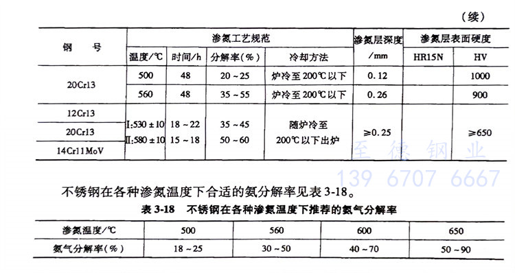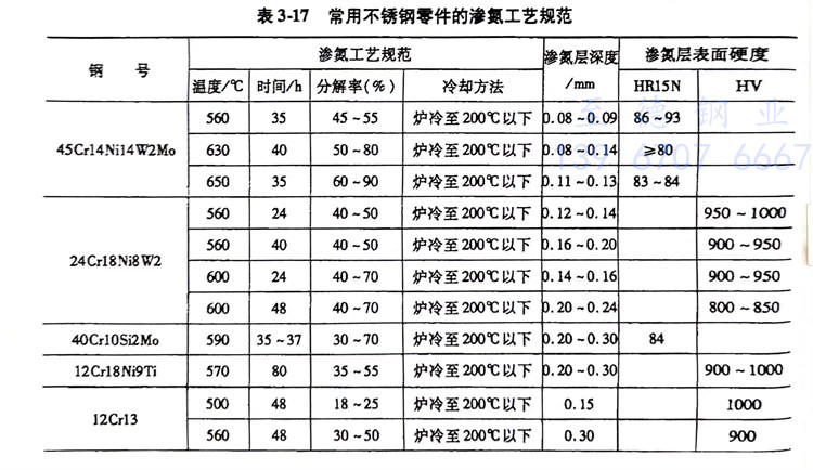 常用的不銹(xiu)鋼零件的滲氮工藝(yi)規范見表3-17。
