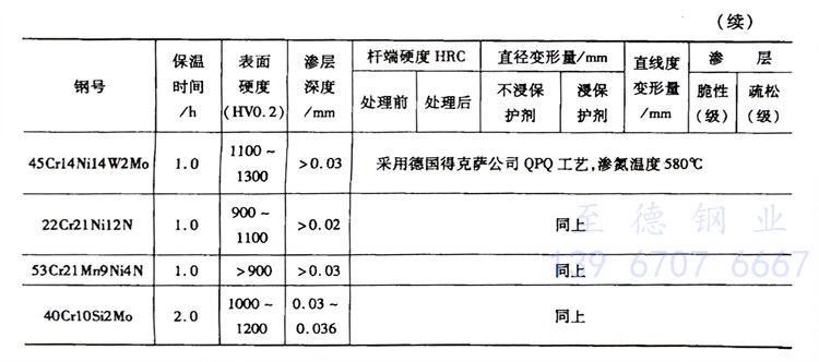 浙江至德鋼業有限公司對不銹鋼(gang)零件進行氣體滲氮,首先需要清除鈍化膜,然后在爐中加入氯化銨,但往往造成排氣孔堵塞,需經常進行清理,而且氣體滲氮時間長,滲氮層淺,所以一些熱處理工廠對小型薄片不銹鋼零件往往采用液體軟滲氮,從而較好地解決了不銹鋼小零件的滲氮問題,而且滲氮時間大大縮短。