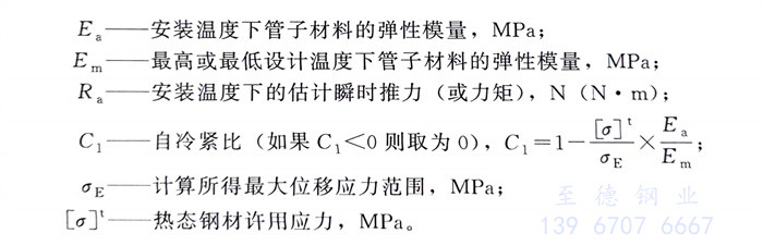 無中(zhong)間約束、兩端固(gu)定的(de)(de)管道(dao)冷緊后固(gu)定點推力的(de)(de)瞬時(shi)最(zui)大值(zhi)應(ying)按(an)下面公式計算(suan):