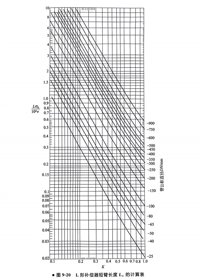 L形補償器(qi)如圖9-19所示,其短臂L2的(de)(de)(de)長(chang)度可按下(xia)式計算(suan)。L形補償器(qi)的(de)(de)(de)長(chang)臂的(de)(de)(de)長(chang)度不應(ying)取的(de)(de)(de)太長(chang),否(fou)則(ze)會造成短臂的(de)(de)(de)側向移(yi)動量(liang)過大(da)。