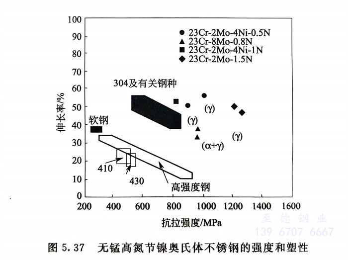 從圖5.38可知,它們雖(sui)然有脆性轉變溫度(du),但可低到-50℃,同時,室(shi)溫韌(ren)性良好,且(qie)與(yu)18-8鉻鎳奧氏體不(bu)銹鋼相當。