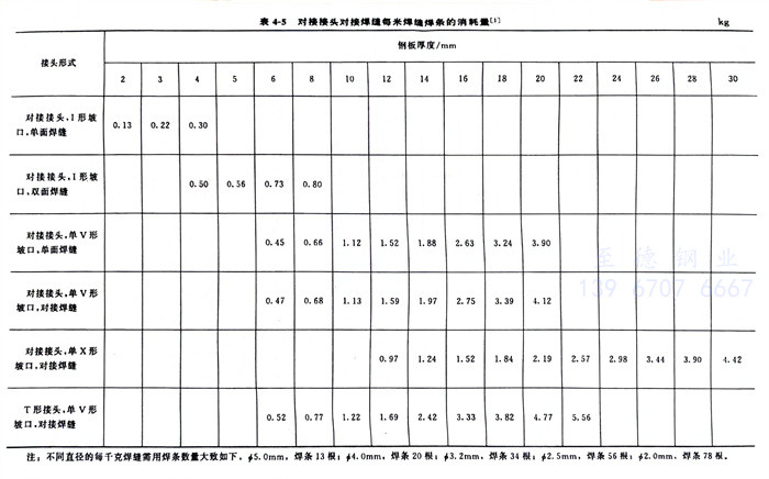 對接(jie)(jie)接(jie)(jie)頭對接(jie)(jie)焊(han)縫每(mei)米焊(han)縫所(suo)消耗焊(han)條的重(zhong)量,參(can)(can)見表(biao)4-5,等邊直(zhi)角焊(han)縫每(mei)米所(suo)消耗焊(han)條的重(zhong)量參(can)(can)見表(biao)4-6。為了準確地計(ji)算焊(han)條的消耗量,推(tui)薦(jian)下列(lie)計(ji)算公(gong)式(shi)。
