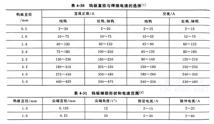 氬氣(qi)流(liu)(liu)量不僅(jin)與(yu)噴嘴直徑有(you)關,還與(yu)焊接電流(liu)(liu)大(da)小有(you)關,它們之間的(de)參數選擇見表4-29。