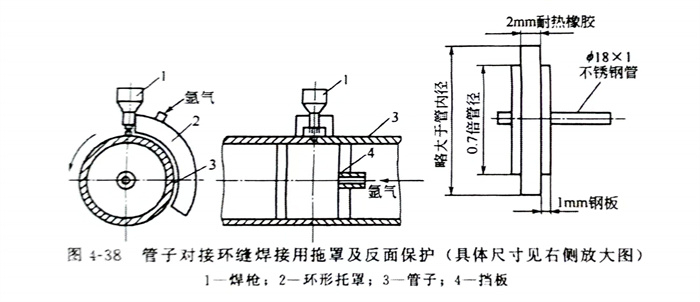 為(wei)了使焊接接頭正面和背面得到(dao)可靠保(bao)護(hu),可采(cai)用(yong)圖(tu)(tu)4-38~圖(tu)(tu)4-40所(suo)示的工藝裝備(bei)來(lai)提高保(bao)護(hu)效果。