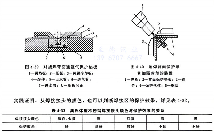 實踐證明,從焊接(jie)接(jie)頭的顏色(se),也可以判斷焊接(jie)區的保護效(xiao)果,詳見表4-32。