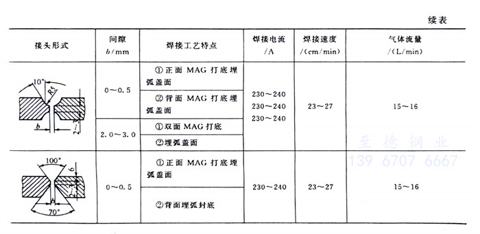 在生產(chan)實踐(jian)中,對于厚為10mm的0Cr19Ni9不(bu)銹鋼板(ban)可實現單面(mian)焊(han)雙面(mian)成形(xing),其(qi)焊(han)接(jie)參數見表4-61。從表中可以看出,隨著間(jian)隙b減少,為了(le)保(bao)證(zheng)焊(han)透,焊(han)接(jie)電流要適當加大才能滿足要求(qiu)。