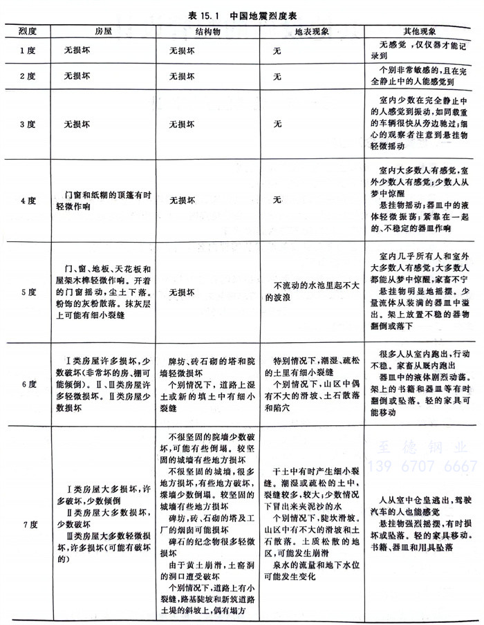 地震對地表和(he)地表建(jian)筑物的影響和(he)破壞的強烈程度(du),稱(cheng)為地震烈度(du)(表15.1)。