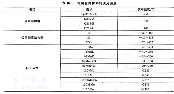 常用(yong)金屬(shu)材料的使用(yong)溫(wen)度見表16.3