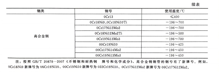 高(gao)溫介質用(yong)(yong)鋼(gang)有(you)Cr-Mo抗(kang)熱鋼(gang)(含0.5%~9%Cr,0.5%~1.0% Mo,最(zui)(zui)大(da)含0.20%C),最(zui)(zui)高(gao)用(yong)(yong)于650℃。低溫用(yong)(yong)鋼(gang):用(yong)(yong)于0~-195℃,常用(yong)(yong)鎳(nie)鋼(gang)。