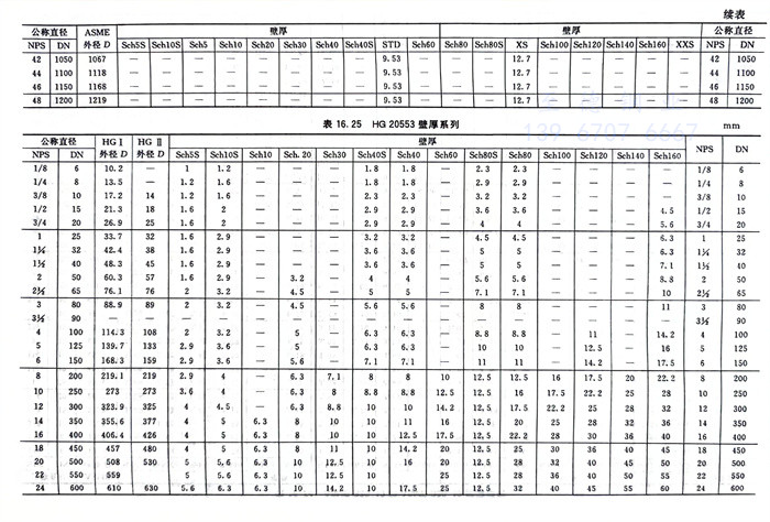 ②. HG 20553壁厚系列見表16.25。