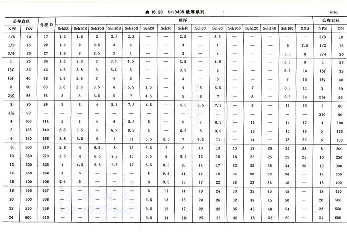 ③. SH 3405 壁厚(hou)系列(lie)見表16.26。