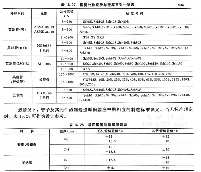 各標準鋼管公稱(cheng)直徑與(yu)壁厚系列一覽表(biao)見表(biao)16.27。