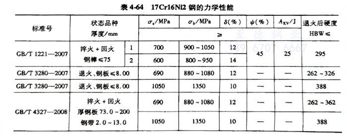 17Cr16Ni2、1.4057、431不銹鋼的力學性能見(jian)表4-64。