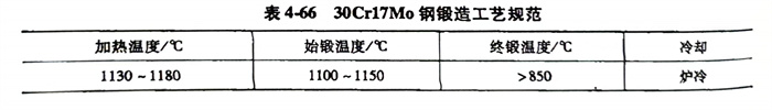 30Cr17Mo 不(bu)銹鋼的鍛(duan)造工(gong)藝規范見表4-66。