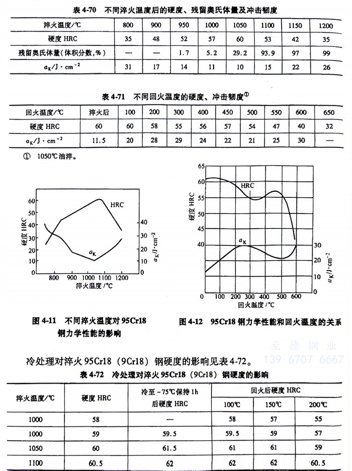 冷處理對淬火95Cr18 (9Cr18) 不銹鋼硬度的影響(xiang)見表4-72。