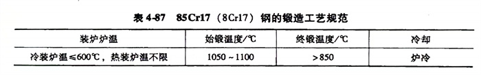 85Cr17(8Cr17)、S44003、SUS440B不銹鋼鍛造工藝規(gui)范見表4-87。